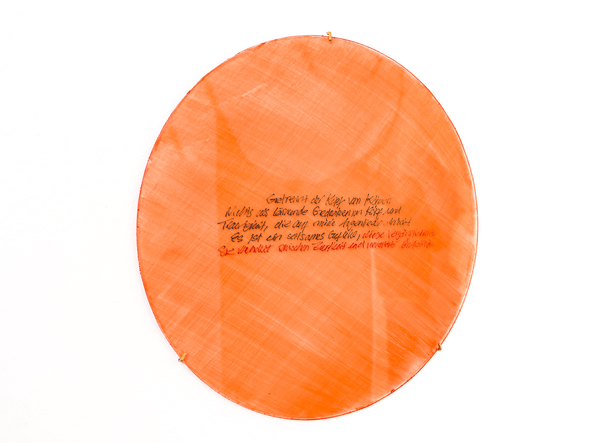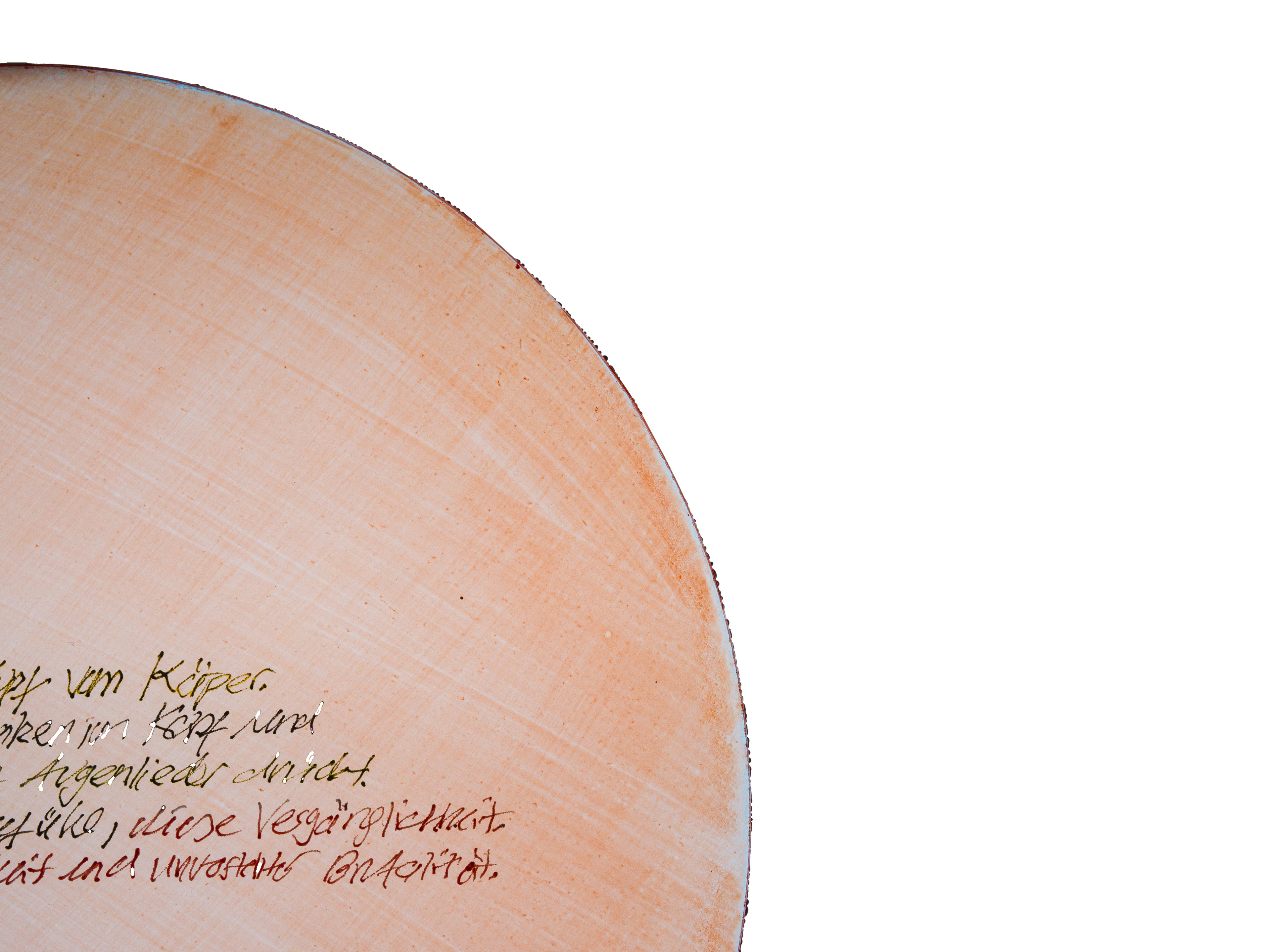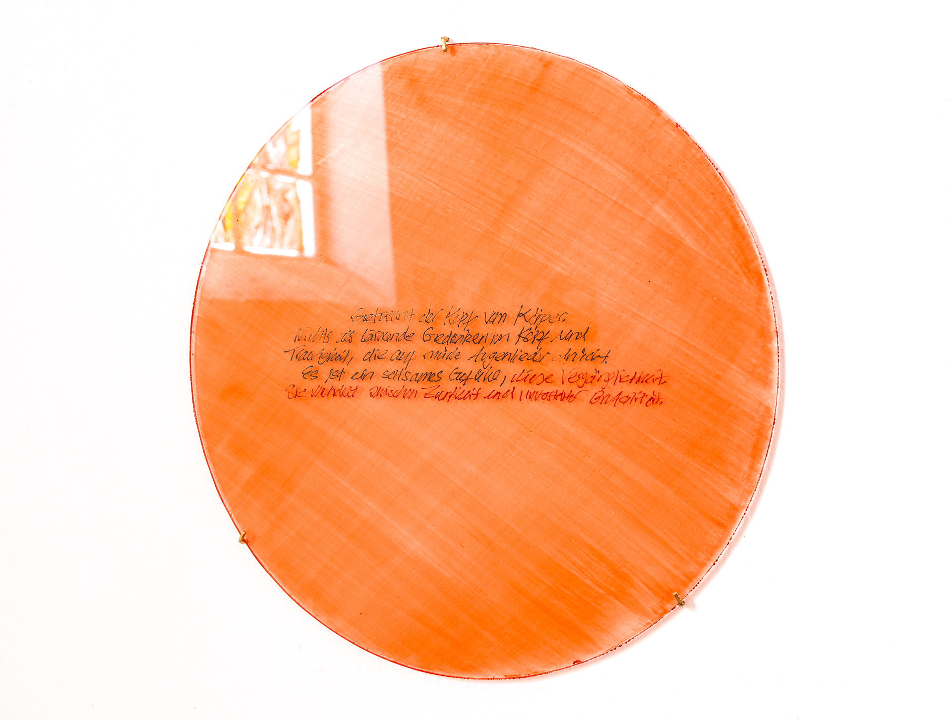 Gravur auf Floatglas (3 mm), Schwarzlot und roter Pigmentauftrag